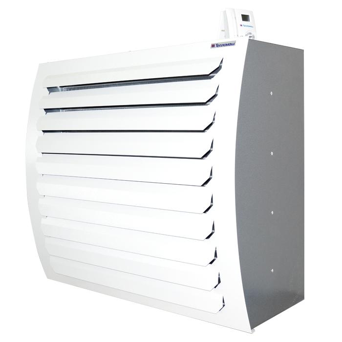 Тепловентилятор для отопления офисных, административных, складских, промышленных и других помещений. Монтаж - вертикальный или горизонтальный. Монтажный кронштейн с регулируемыми углами поворота и наклона тепловентилятора, и регулируемые жалюзи позволяют направить воздушную струю в рабочую область.